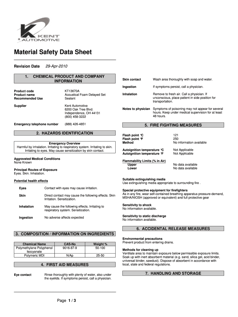 Material Safety Data Sheet 29Apr2010 Revision Date 1. CHEMICAL PRODUCT AND COMPANY INFORMATION Skin contact Wash area thoroughly with soap and water. Ingestion If symptoms persist, call a physician.