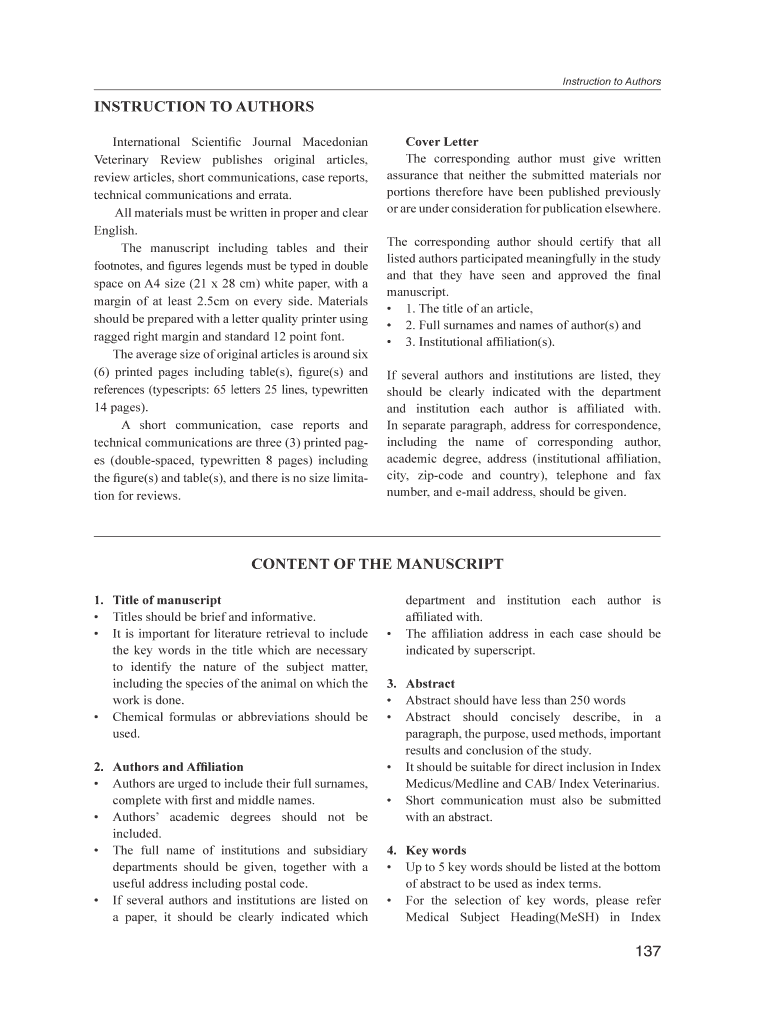 Get the free Instruction to Authors INSTRUCTION TO AUTHORS - macvetrev