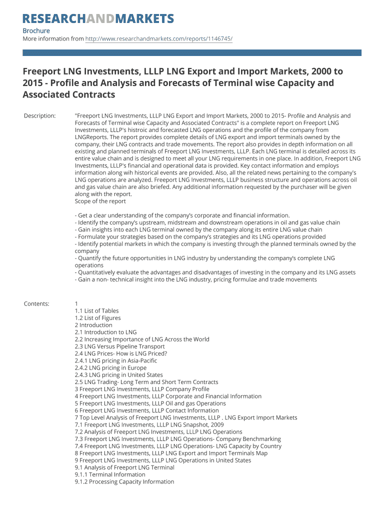 This document is a comprehensive report detailing Freeport LNG Investments, LLLP's historic and forecasted LNG operations, LNG terminals, contracts, and financial data, aiming to provide insights