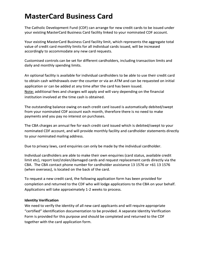 your existing MasterCard Business Card facility linked to your nominated CDF account.
