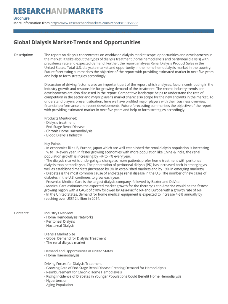 What information must be reported on Global Dialysis Market-Trends and Opportunities?