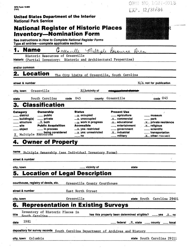 Get the free NFS Form 10900 (781) United States Department of the Interior National Park Service ...