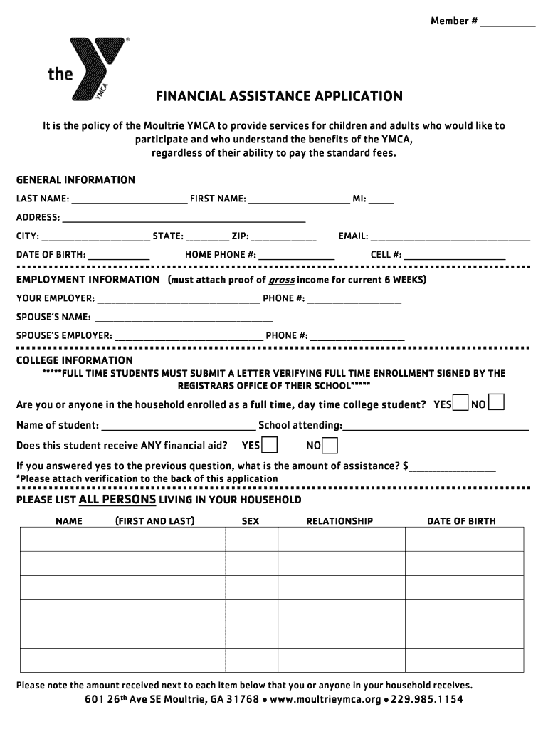 Member # FINANCIAL ASSISTANCE APPLICATION It is the policy of the Mountie YMCA to provide services for children and adults who would like to participate and who understand the benefits of the YMCA,