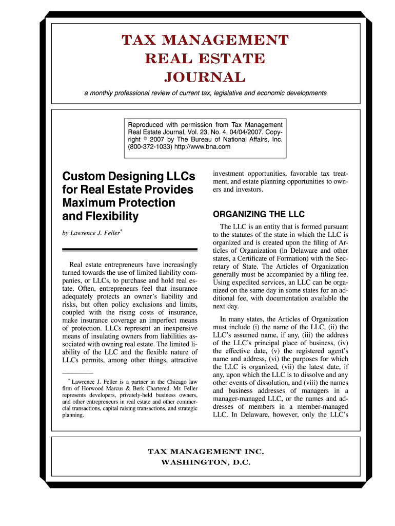 Get the free Tax Management Real Estate Journal