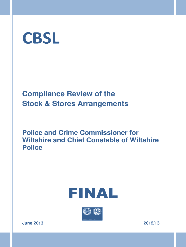 CSL Compliance Review of the Stock & Stores Arrangements Police and Crime Commissioner for Wiltshire and Chief Constable of Wiltshire Police FINAL June 2013 2012×13 CSL 2012×13 Police and Crime