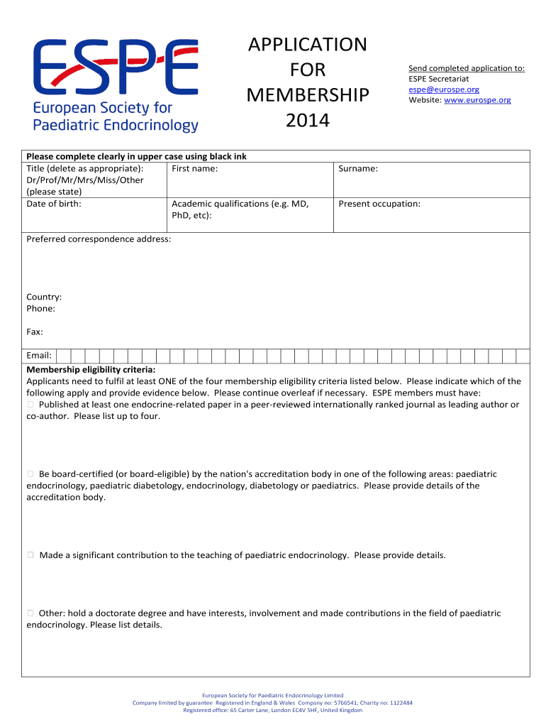 Get the free Printable application form - European Society for Paediatric ... - eurospe