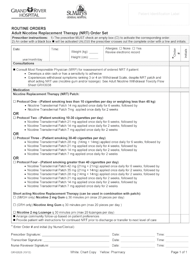 Patient Identification Label ROUTINE ORDERS Adult Nicotine Replacement Therapy (NRT) Order Set Prescriber instructions: 1) The prescriber MUST check an empty box ...