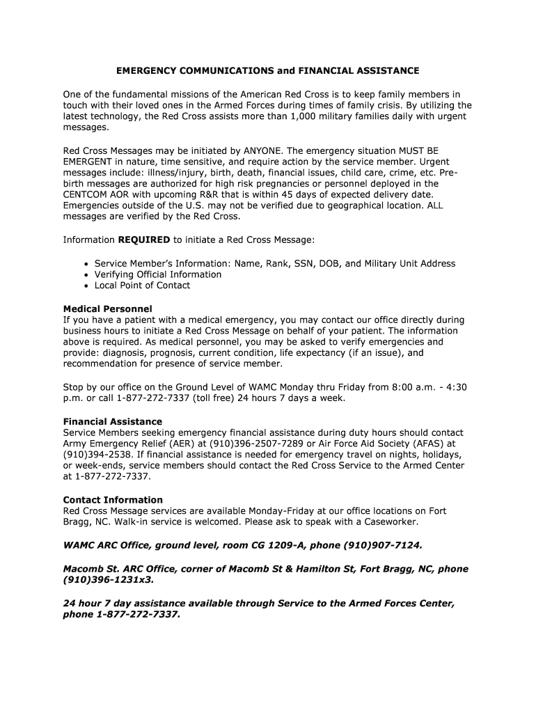 EMERGENCY COMMUNICATIONS and FINANCIAL ASSISTANCE