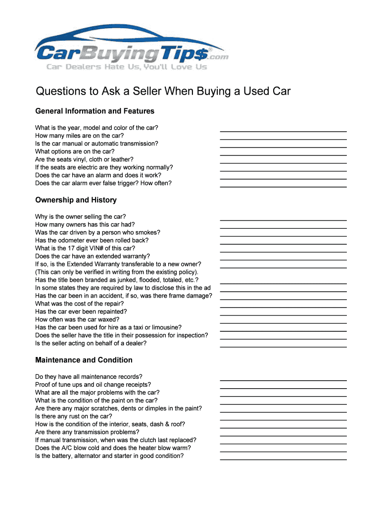 How to Use the Used Car Seller Questions Form (Step-by-Step)
