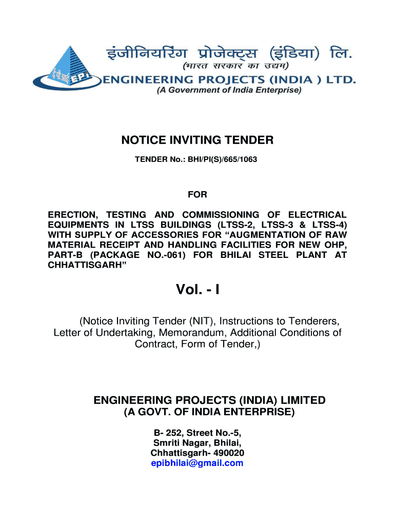 NOTICE INVITING TENDER No.: BHI/PI’S)/665×1063