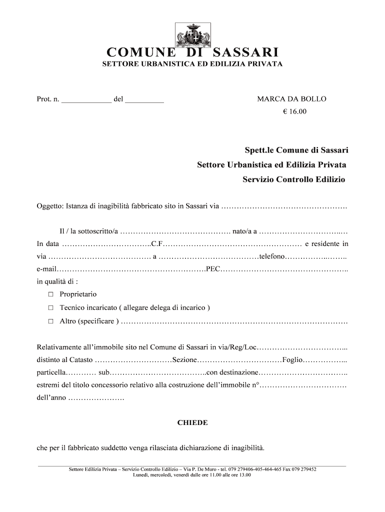 Ottieni il gratuito Richiesta certificato inagibilita - Comune di Sassari - comune sassari