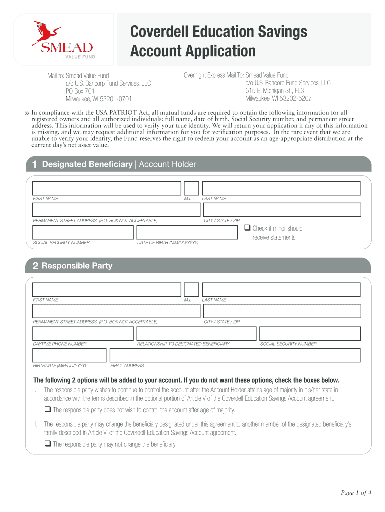Cover dell Education Savings Account Application Mail to: Mead Value Fund c×o U.S. Ban corp Fund Services, LLC PO Box 701 Milwaukee, WI 532010701 Overnight Express Mail To: Mead Value Fund c×o U.S.