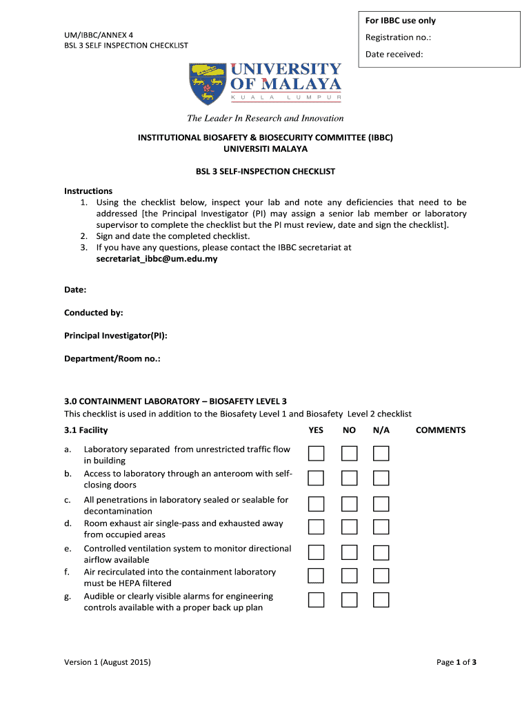 How to fill out BSL 3 self inspection: