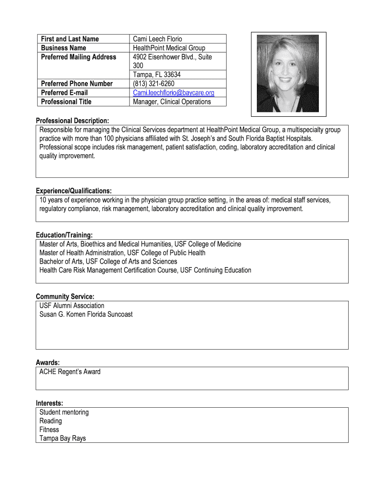 First and Last Name Business Name Preferred Mailing Address Preferred Phone Number Preferred Email Professional Title Came Leech Florid HealthPocket Medical Group 4902 Eisenhower Blvd., Suite 300