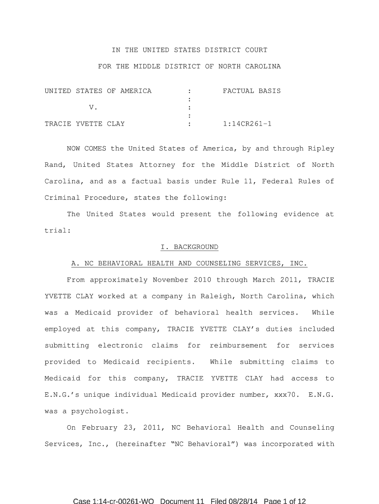 TRACIE YVETTE CLAYFACTUAL BASIS1:14CR2611NOW COMES the United States of America, by