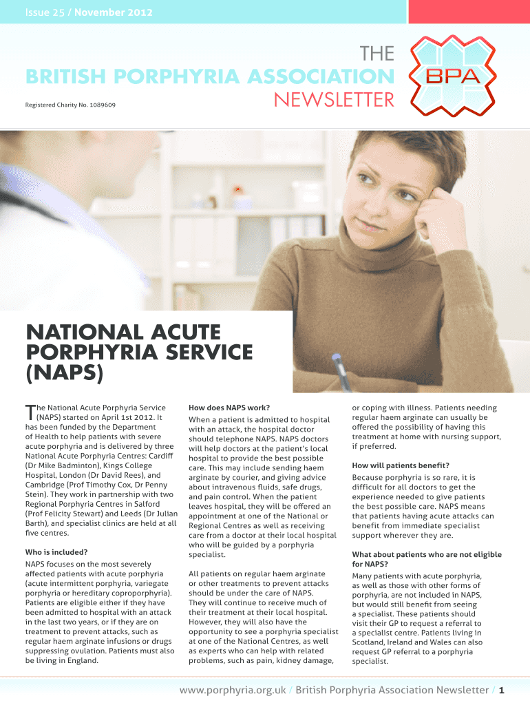 Get the free NATIONAL ACUTE bPORPHYRIAb SERVICE NAPS - porphyria org