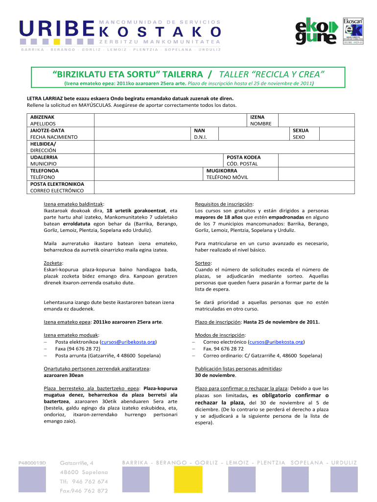 Fill out your birziklatu eta sortu tailerra online with pdfFiller!