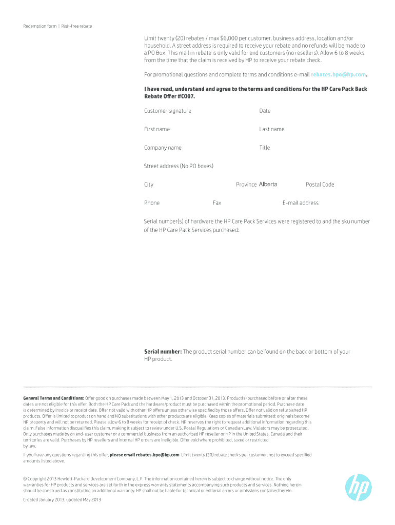 The form is available for end customers who have purchased eligible HP Care Pack Services with HP PC products between May 1, 2013, and October 31, 2013.