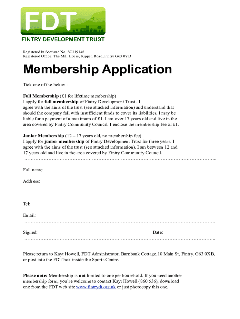 Registered Office: The Mill House, Kipper Road, Finery G63 0YDMembership Application