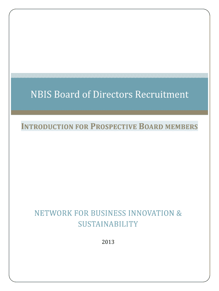Get the free NBIS Board of Directors Recruitment Introduction for Prospective Board members - nbis