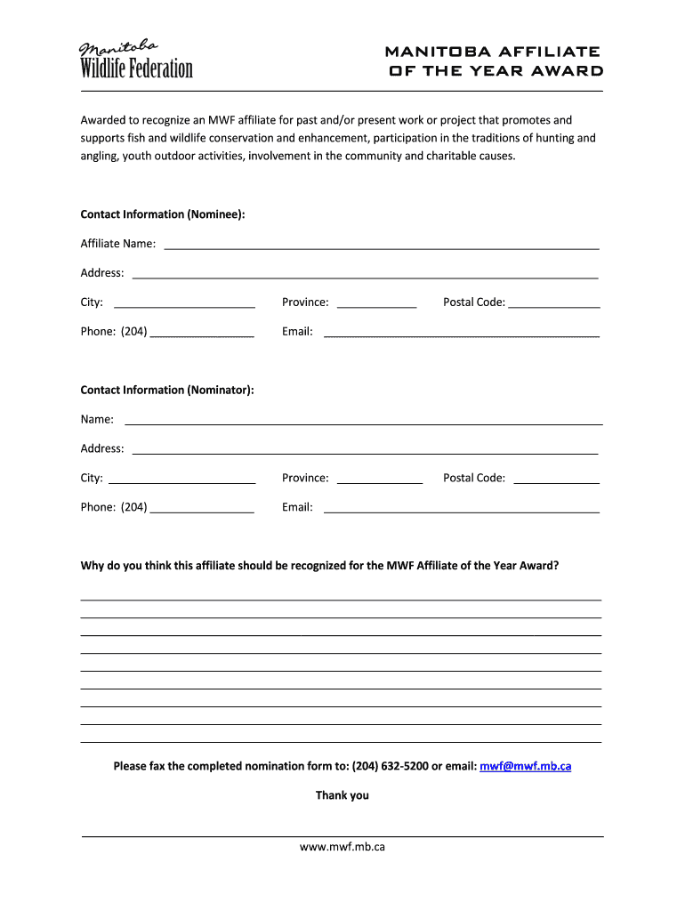 Get the free Nomination Form (PDF) - Manitoba Wildlife Federation - mwf mb