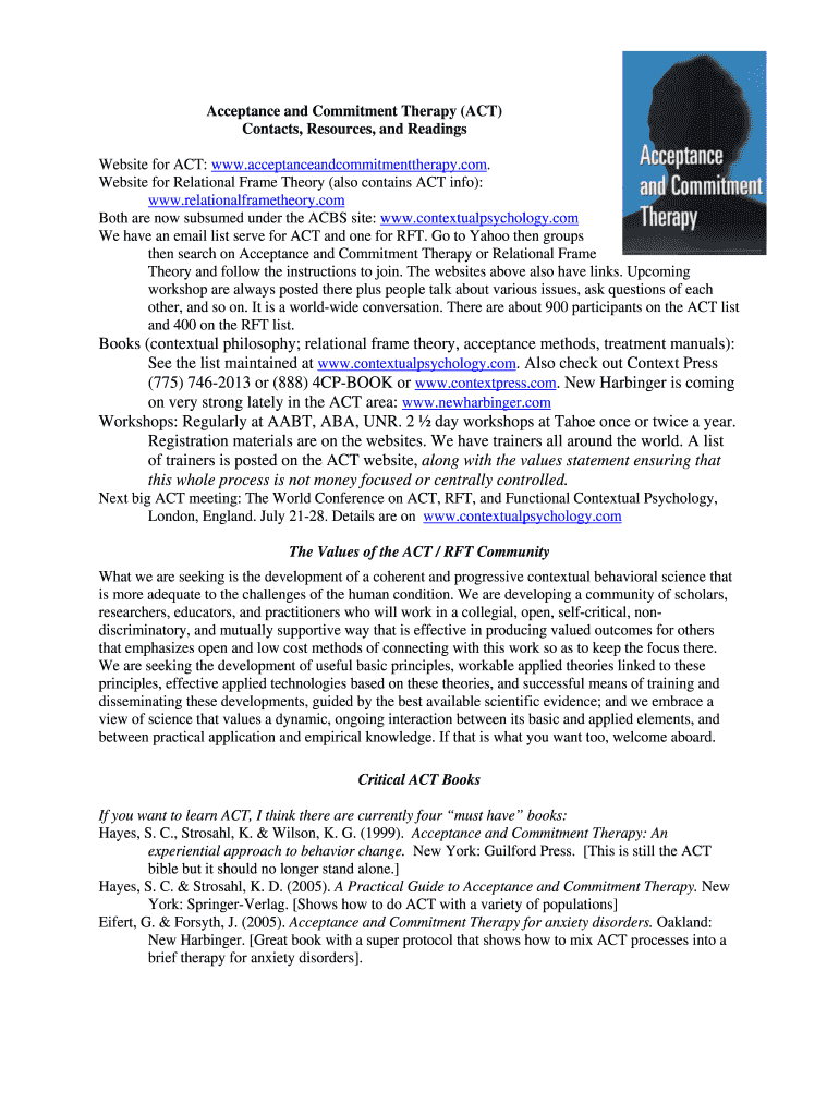 Get the free Acceptance and Commitment Therapy (ACT)