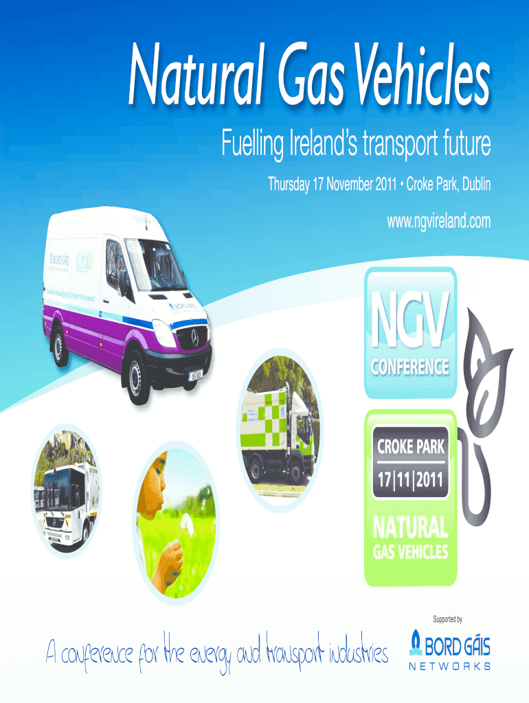 Natural Gas Vehicles Fuelling Ireland's transport future Thursday 17 November 2011 Broke Park, Dublin www.ngvireland.com Supported by A conference for the energy and transport industries Fuelled by