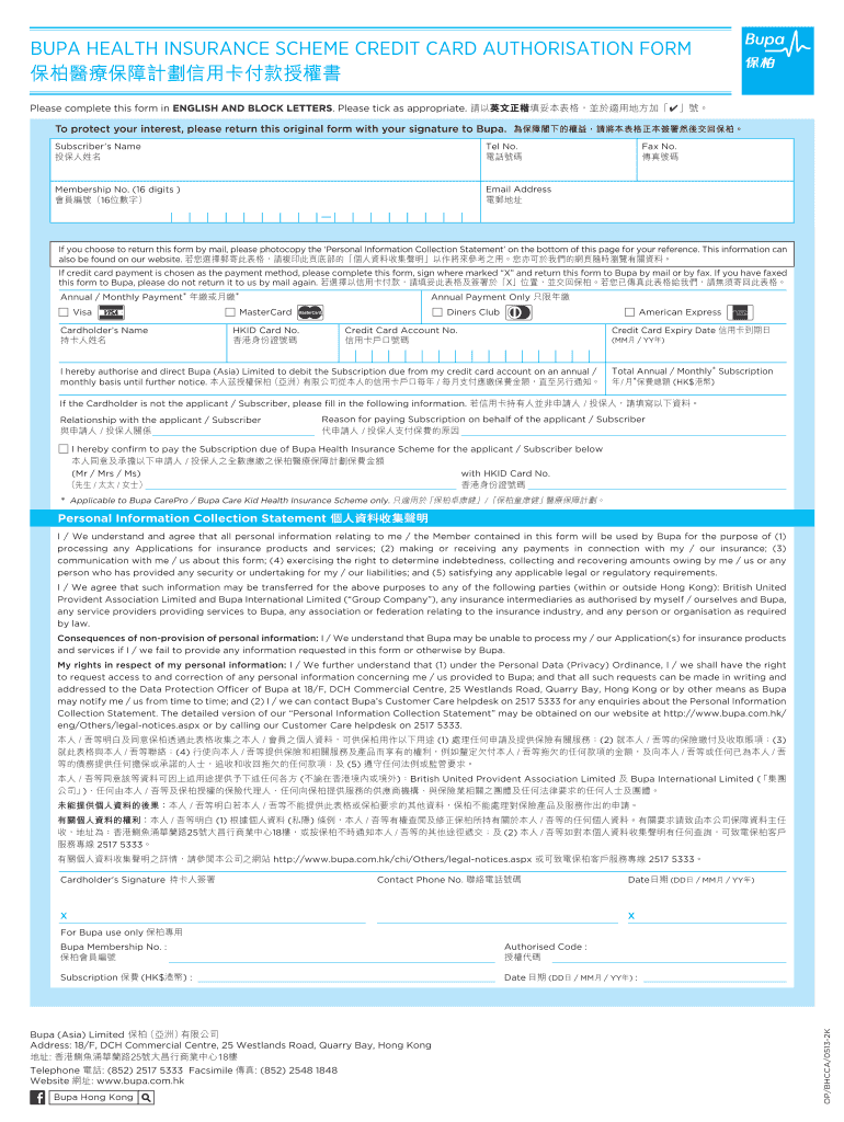 BPA HEALTH INSURANCE SCHEME CREDIT CARD Authorization FORM Please complete this form in ENGLISH AND BLOCK LETTERS. Please tick as appropriate. To protect your interest, please return this original