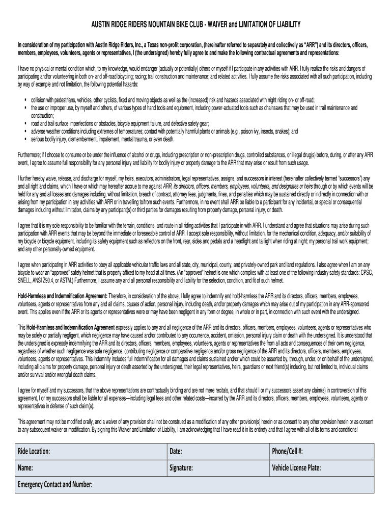 Get the free BWaiverb For Club Rides Print sign amp bring - Austin Ridge Riders