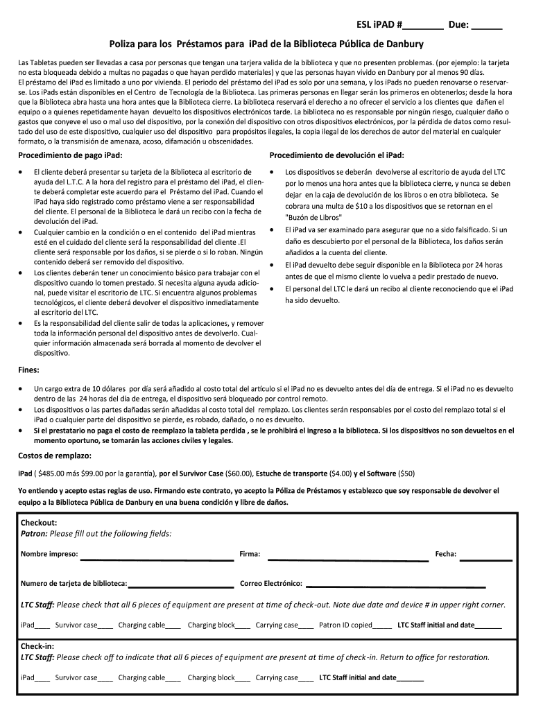 ESL iPad # Due: Police para Los Proteins para iPad de la Biblioteca Public de Danbury Las Tablets Queen SER leads a Casey POR personas Que Tongan RNA Barrera valid DE la biblioteca y Que no presented