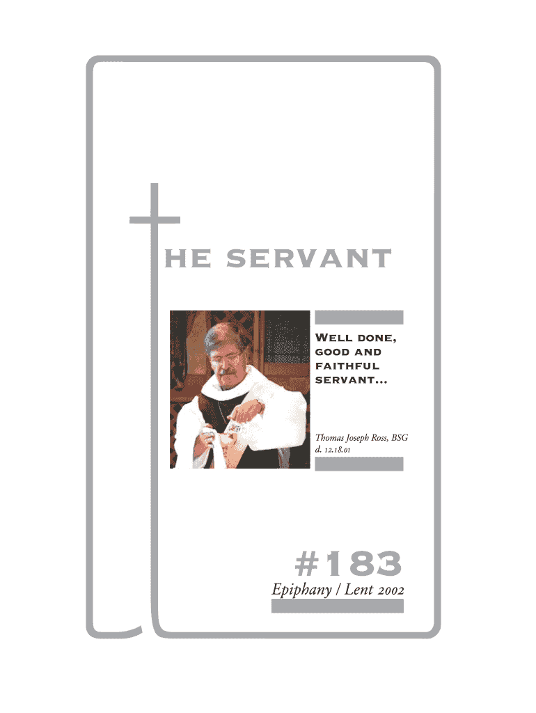 He servant Well done, good and faithful servant... Thomas Joseph Ross, BSG d. 12.18.01 ×183 Epiphany / Lent 2002 Publications from the Brotherhood of Saint Gregory Publication Music of BSG The State
