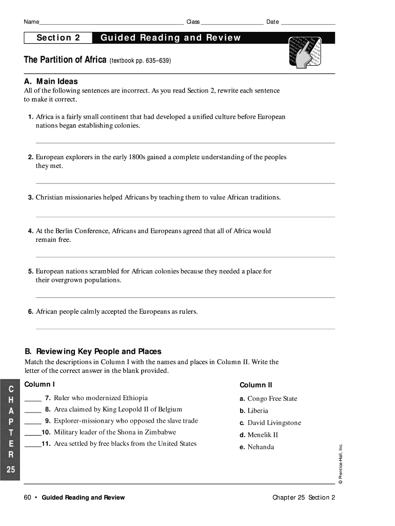 Get the free The Partition of Africa Guided Reading