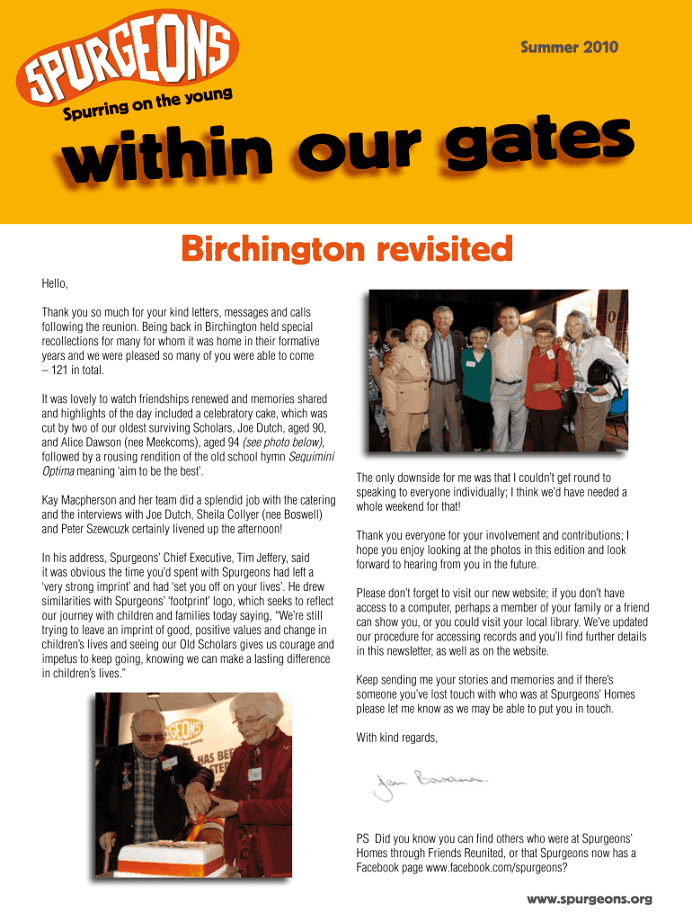 Summer 2010 your gates within o Birching ton revisited Hello, Thank you so much for your kind letters, messages and calls following the reunion. Being back in Birching ton held special recollections