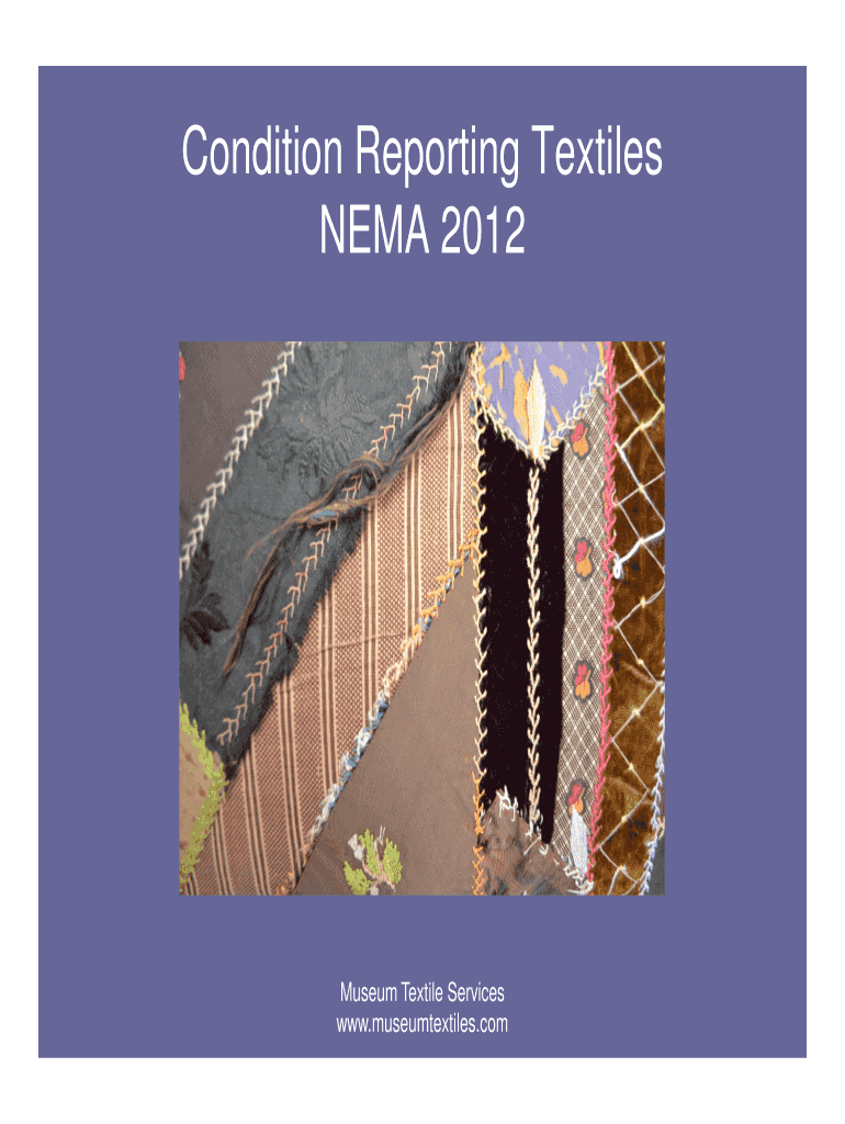 Condition Reporting Textiles NEA 2012Museum Textile Services www.museumtextiles.comTextile Condition TermsMuseum Textile Services www.museumtextiles.comSample Condition reportMuseum Textile Services