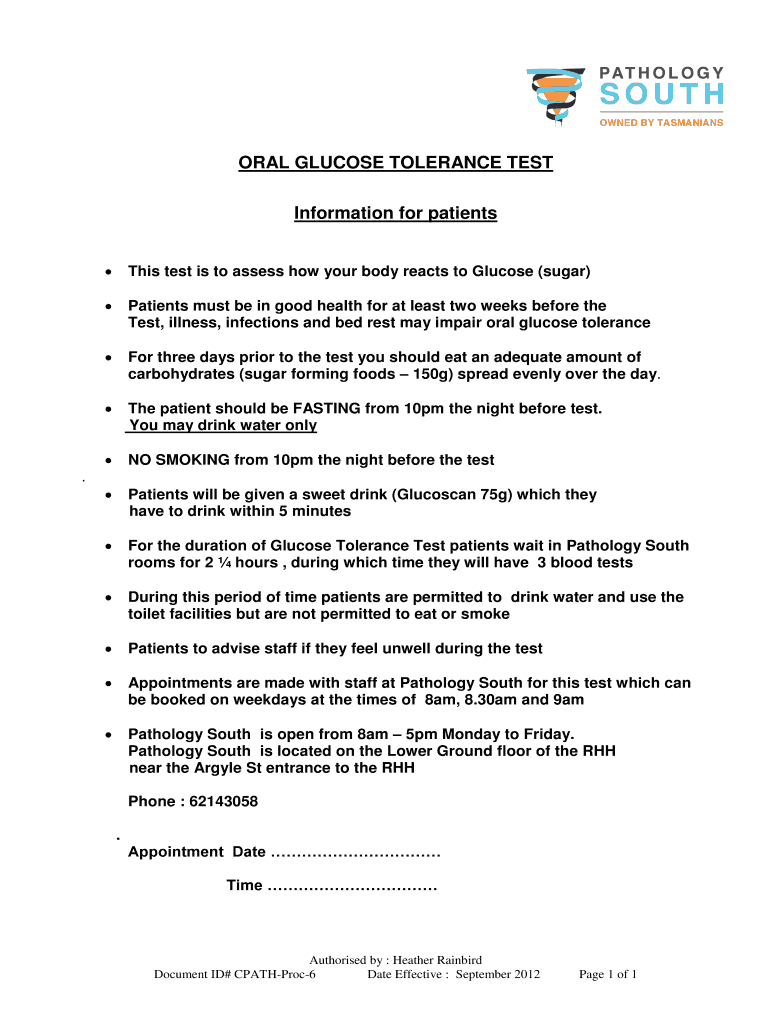 Get the free This test is to assess how your body reacts to Glucose (sugar)