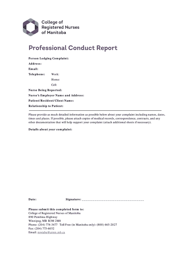 Get the free Professional Conduct Report - crnm mb