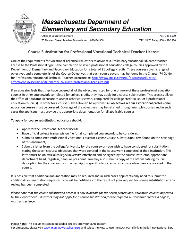 Get the free BCourse Substitutionb for Professional Vocational bb - MassGov
