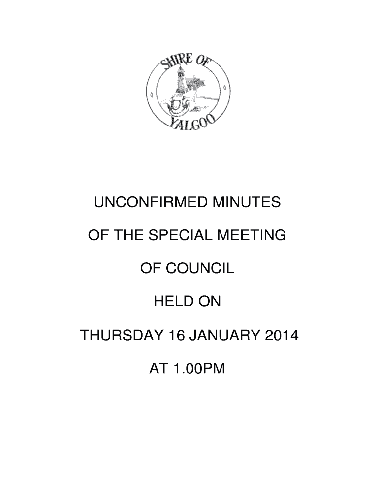 UNCONFIRMED MINUTES OF THE SPECIAL MEETING OF COUNCIL HELD ON THURSDAY 16 JANUARY 2014 AT 1.00PM DISCLAIMER No responsibility whatsoever is implied or accepted by the Shire of Yahoo for any act, omission