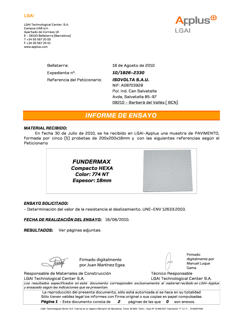 Obtener el gratis INFORME DE ENSAYO - fundermaxat