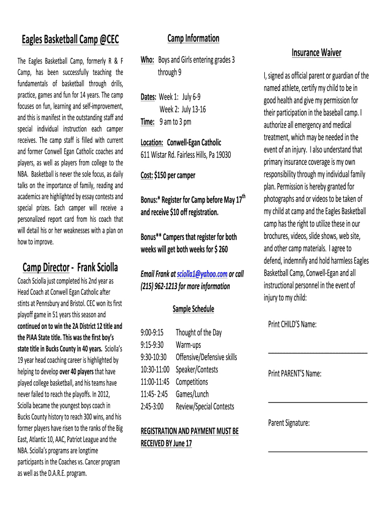 Get the free Eagles Basketball Camp.docx - conwell-egan
