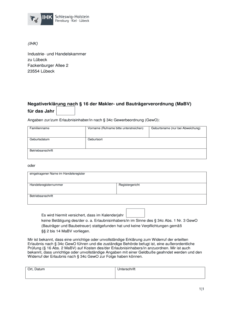 Holen Sie sich kostenlos Negativerkl rung nach 16 der Makler- und Bautr gerverordnung ... - ihk-s...