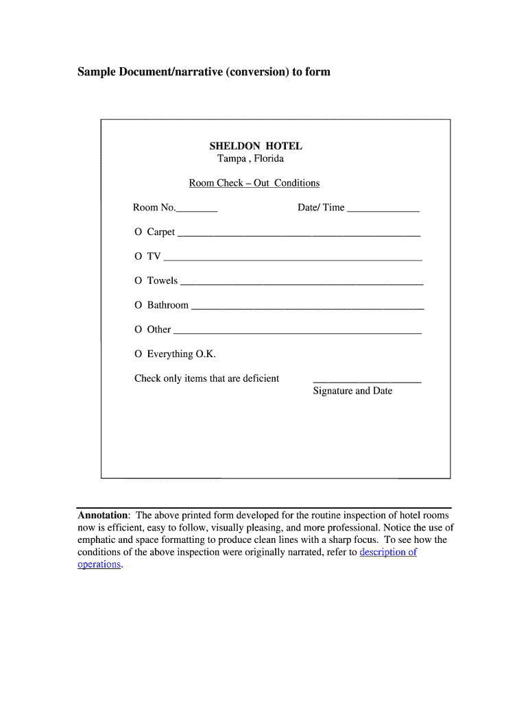 Get the free Hotel Room Check-Out Conditions Form
