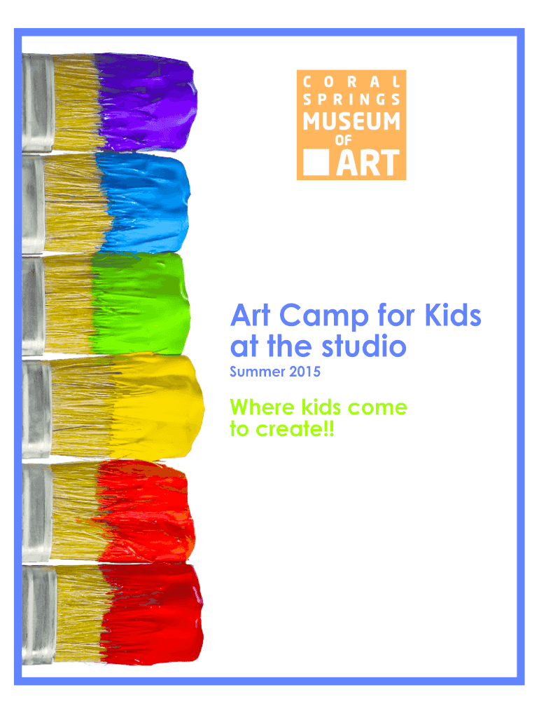 Art Camp for Kids at the studio Summer 2015 Where kids come to create!! Let your children imagination soar this summer!! The Coral Springs Museum of Art offers the perfect summer programs for children