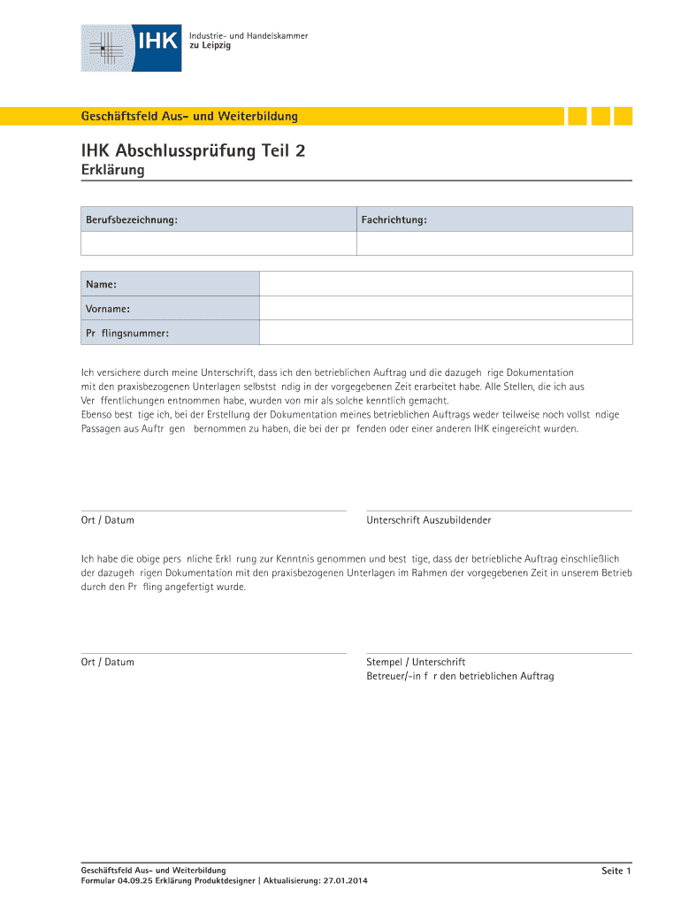 Wie fülle ich erklrung abschlussprfung produktdesigner dieses aus?