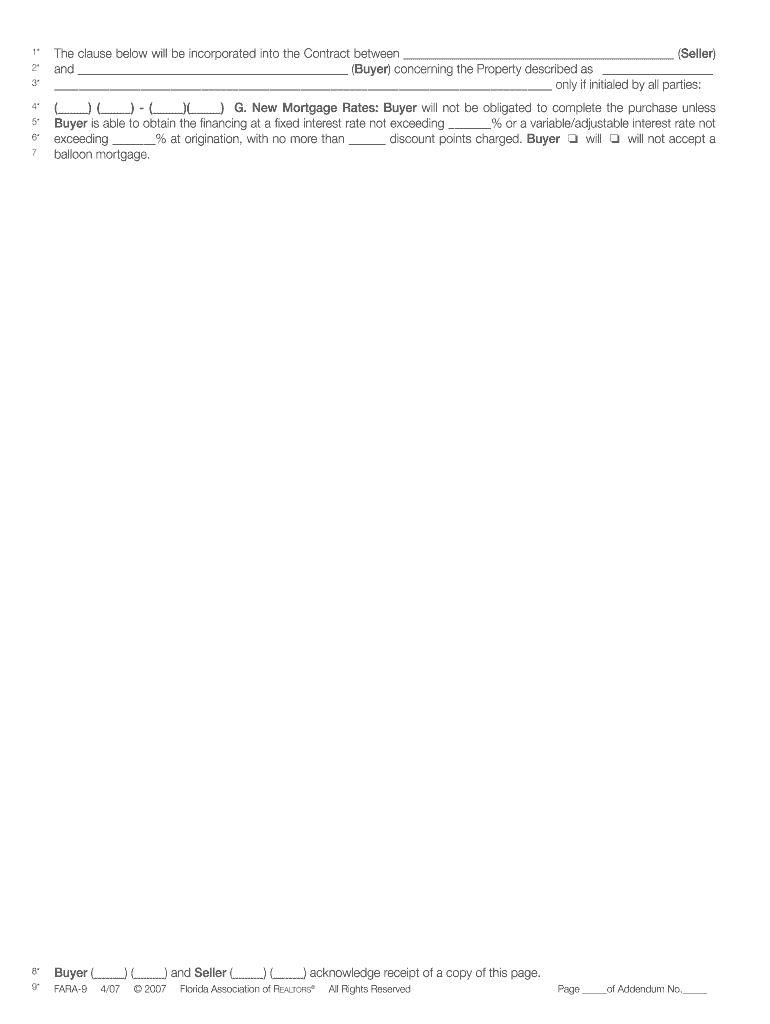 1× 2× 3× 4* The clause below will be incorporated into the Contract between (Seller) and (Buyer) concerning the Property described as only if initialed by all parties: 7 () () ()() G. New Mortgage