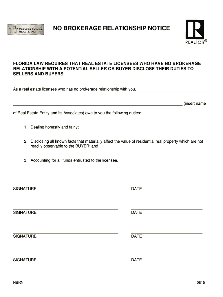 Get the free NO BROKERAGE RELATIONSHIP NOTICE - realtywebbiz