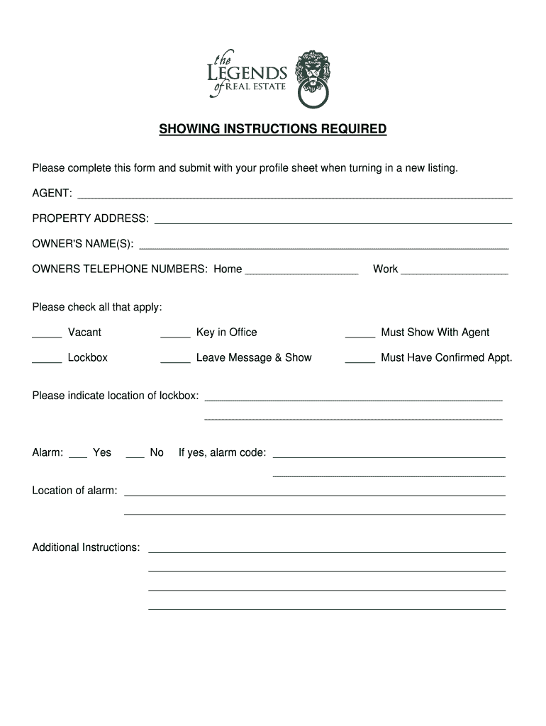 Fill out your showing instructions required please online with pdfFiller!