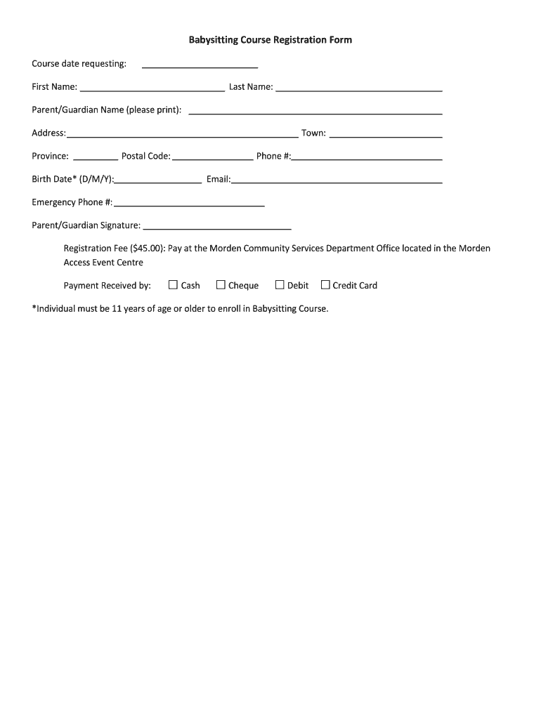 Anyone who wishes to participate in a babysitting course is required to file the registration form.