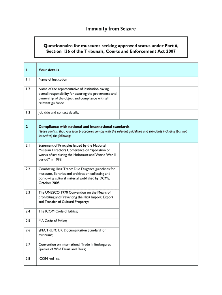 Section 136 of the Tribunals, Courts and Enforcement Act 20071Your details1.1Name of Institution1.2Name of the