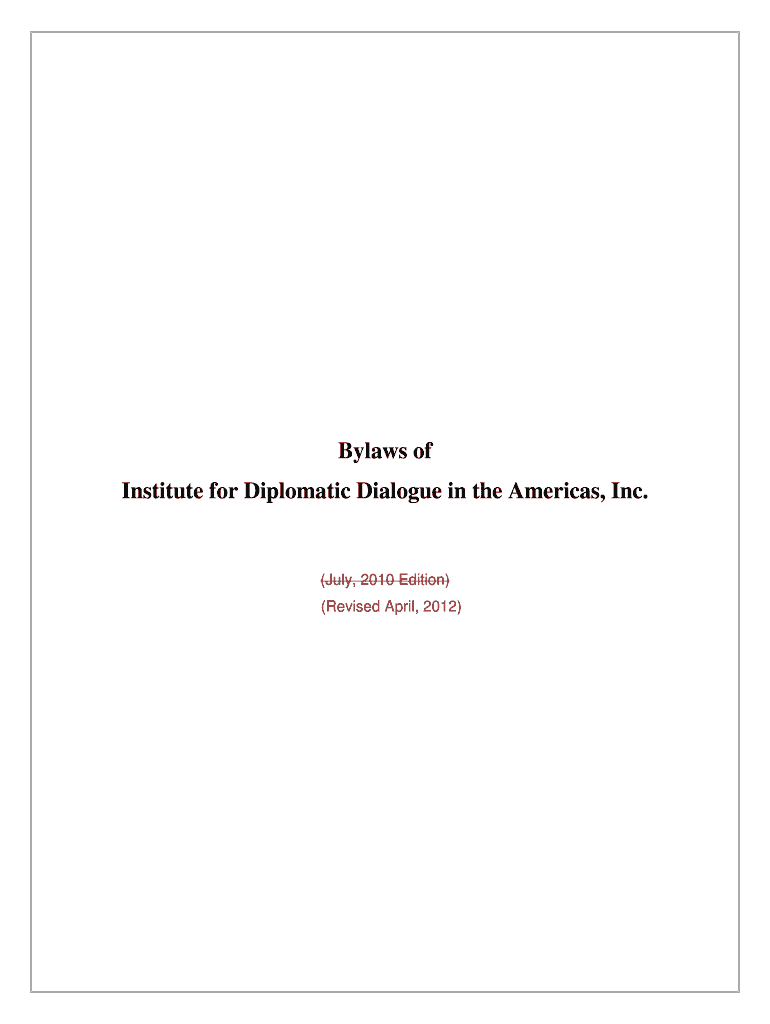 Bylaws of Institute for Diplomatic Dialogue in the Americas, Inc. (July 2010 Edition) (Revised April 2012) Institute for Diplomatic Dialogue in the Americas, Inc. Article 1 Name of the Corporation